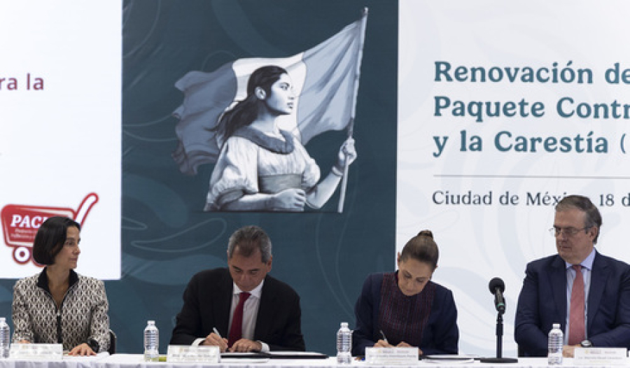 Ciudad de México.- La Presidenta de México Claudia Sheinbaum Pardo firmó, con tiendas de autoservicio y agroindustrias, la renovación del Paquete Contra la Inflación y la Carestía (Pacic), que mantiene en 910 pesos el precio de los 24 productos de la canasta básica, es decir, no aumenta su precio y con ello se cuida la economía popular.