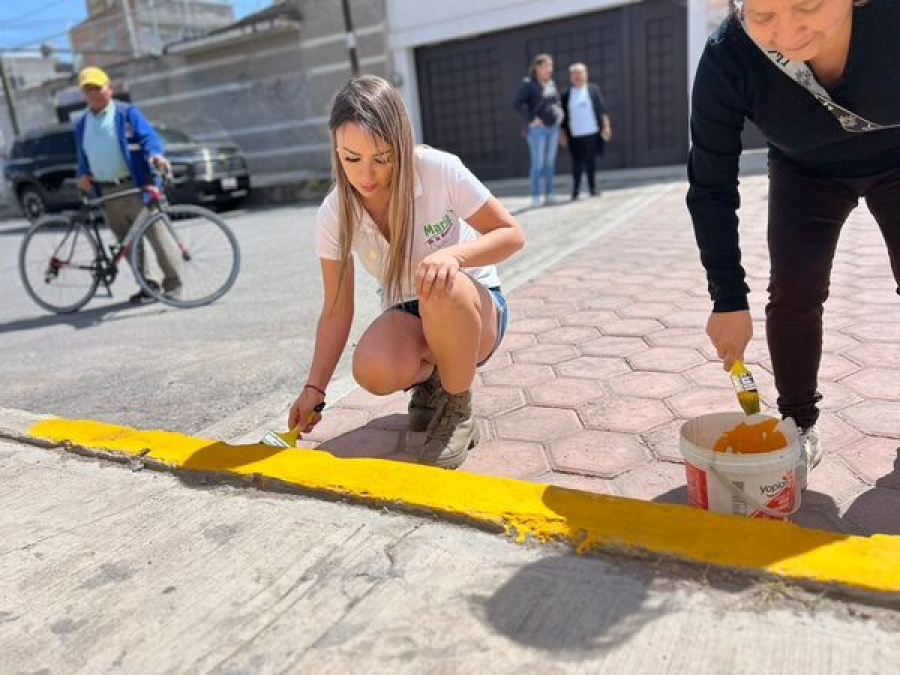 Asimismo, visitó la calle Puebla, en la colonia Francisco Villa, donde, en conjunto con las y los vecinos, llevó a cabo trabajos de pintura de guarniciones, con lo que dio cumplimiento a uno de los compromisos adquiridos previamente.