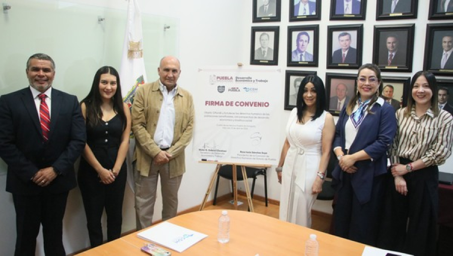 PUEBLA, Pue.- Con el objetivo de fortalecer la promoción, defensa y ejercicio de los derechos fundamentales en el ámbito económico y laboral, el Gobierno del Estado que encabeza el gobernador Alejandro Armenta Mier formalizó la firma de un convenio de colaboración entre la Secretaría de Desarrollo Económico y Trabajo (SEDETRA) y la Comisión de Derechos Humanos (CDH) de Puebla.